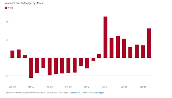 Figure1: Arizona Trade with World 2020 and 2021 (% change from same month year ago)